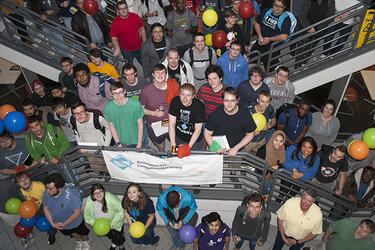 Students enjoyed friendly competition at the annual ACM Programming Contest this Saturday. Thirty-six teams competed to win prizes donated by Reynolds and Reynolds. Undergraduate and Graduate teams competed against each other to solve seven programming questions. The morning was full of balloons, pizza, and coding earning extra credit for classes along the way.