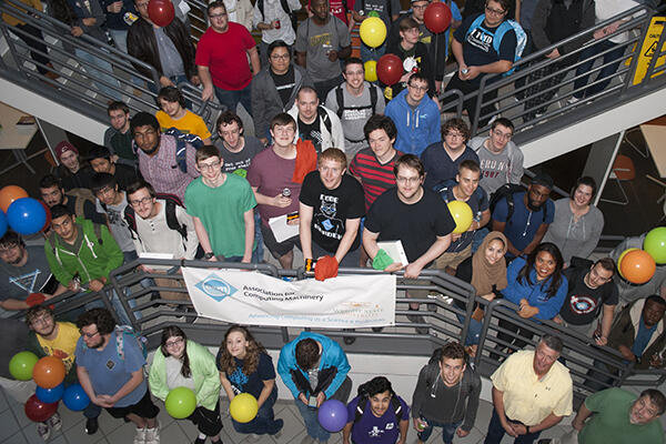 Students enjoyed friendly competition at the annual ACM Programming Contest this Saturday. Thirty-six teams competed to win prizes donated by Reynolds and Reynolds. Undergraduate and Graduate teams competed against each other to solve seven programming questions. The morning was full of balloons